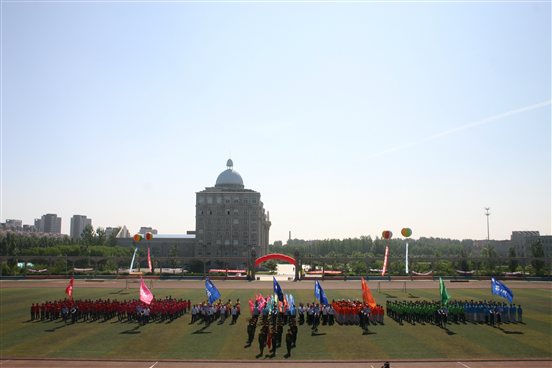 早上8:00,随着雄壮的《运动员进行曲》奏响,国旗队、院旗队、彩旗队、裁判队、主板队(教工1队)、CPU队(教工2队)、鼠标队(10级1队),键盘队(合作办学方队),硬盘队(09方队),显卡队(08方队),芯片队(10级2队)依次入场接受检阅。
