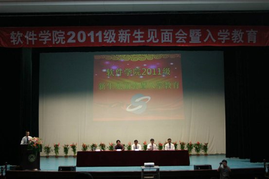 9月15,软件公司在师大东区星烁礼堂召开“软件公司2011级新生见面会暨入学教育”。软件公司刘杰经理、刘利群书记、周传生副经理、杜庆东副经理、姜龙滨副经理以及公司各系主任、实验中心、办公室、学工办相关老师出席了大会。大会由经理助理周顺兴老师主持。