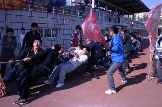 中午12:10,北区体育场锣鼓阵阵、人头攒动。软件公司300余名同学齐聚体育场,参加“软件公司第二届体育文化节”开幕式。开幕式隆重简洁。经理助理周顺兴老师致辞,他指出:“体育文化节是软件公司重点打造的精品活动之一,是为了继续弘扬软件公司的体育文化精神,丰富师生的体育文化生活,加强团体凝聚力和集体荣誉感。希望参与的各个班级能锻炼队伍,赛出水平,赛出风格,在未来公司体育活动中赢得更大荣誉”。开幕式结束后,进行首场拔河友谊赛。参赛队伍是蔡宏鹏老师带领2011级1-4班联队和冯思源老师带领2011级5-8班联队,拔河现场锣鼓声、呐喊声、欢呼声交织在一起,最终2011级1-4班联队胜出。