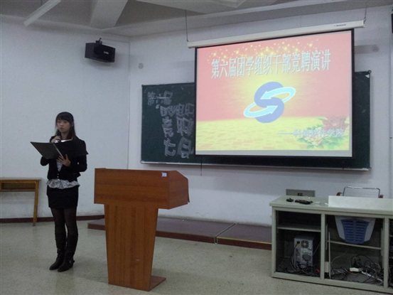 傍晚天空中飞舞着雪花,使人感觉到冬日的寒冷,但在软件楼117教室却座无虚席,每个人脸上洋溢着青春的热情。在一阵热烈的掌声中,软件公司第六届团学组织干部竞聘演讲拉开了帷幕。此次活动由第五届团学组织副主席魏唯唯主持。2009级潘雨等7人竞选团委主席团的4个职位, 2010级黄云鹏等55人竞选团委组织部部长、团委宣传部部长、生活部部长等14个团学组织部门的部长。每一个人限时3分钟,由与会的老师、员工干部代表现场打分投票。参加竞聘演讲的同学从对团学组织的认识、工作体会以及自己在竞聘岗位上的工作设想等方面进行畅谈。竞选者激情洋溢的表现,赢得阵阵掌声。
