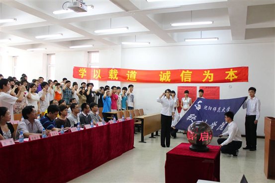 全体同学面向软件公司院旗进行诚信宣誓