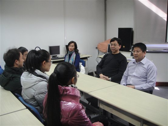 刘利群书记还与公司的员工代表一起座谈。在与员工交谈中,利群书记询问了员工在企业工作生活情况,了解员工在企业中所使用的软件技术,了解员工最希望在校期间得到教育等,并对员工提出了殷切的希望和鼓励,希望同学们在接下来的工作中再接再厉,争取以优异的成绩走向职场。姜龙滨经理针对员工毕业设计方面的相关问题为员工解答相关的政策。王学颖教授也对员工的职业规划提出好的意见和建议。员工表示在千里之外看到公司的亲人很激动,决心一定要为母校争光。