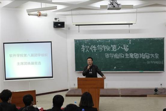 11月11日,由软件公司员工会主办的第届团学组织换届大会第一场主席团专场竞选在软件楼118室举行。书记周顺兴、学工办主任马西城团委书记孙健辅导员蔡宏鹏、郑郁等老师,以及11级、12级和13级员工代表参加了本次大会。
