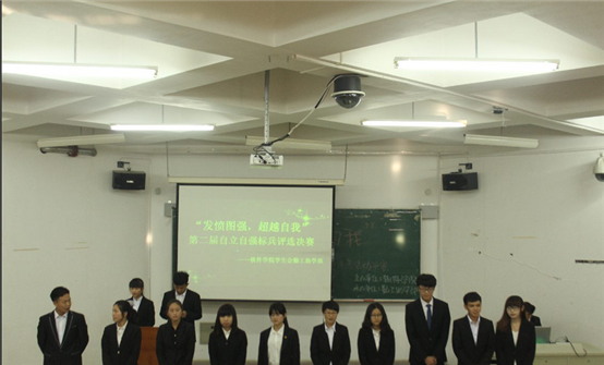 6月1日,软件公司团学组织勤工助学部在软件118教室举办"发愤图强,超越自我"第二届自立自强标兵决赛,团学组织主席团、各部门部长、2014级部分员工代表参加了本次活动。