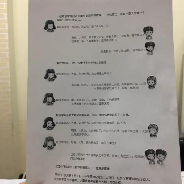 活动前期,团委志愿工作部的志愿者们为了更好的宣传雷锋精神,积极准备活动材料。活动当天,志愿者们在教室向同学们介绍了雷锋精神,并分发倡议书。在场的同学们也都十分积极。融洽的氛围让每一位同学感受到了雷锋就在我们的身边,雷锋精神从不曾消逝过。