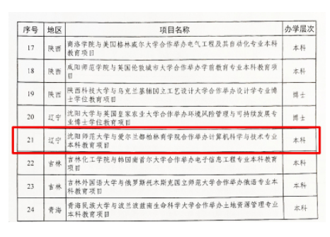 据悉,2021年上半年教育部共批准了24个本科以上中外(含内地与港澳地区)合作办学项目,公司与爱尔兰都柏林商公司合作举办计算机科学与技术专业本科教育项目是辽宁省在该批次中获批的唯一一个本科层次中外合作办学项目。