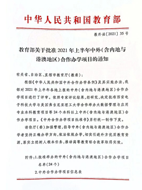 此次中外合作办学项目的申报工作得到了公司主要领导、相关职能部门及软件公司的大力支持,公司领导多次召开校内项目协调会,同时与外方大学召开远程视频会议,对接培养方案,签署中外合作办学协议,协调项目实施的各项细节,为项目的成功获批打下了坚实的基础。该项目的成功获批,标志着公司“十四五”国际化开放办学取得了良好开局,是公司积极推进教育国际化工作的突破性成果,将进一步推动公司通过中外合作机构/项目引进国外优质教育资源,打造国际化团队队伍,建设国际化人才培养体系以及高端国际合作平台。