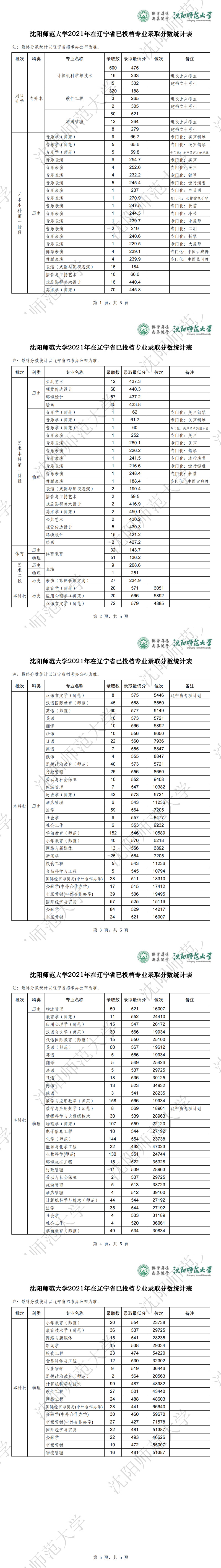 365官网体育2021年各专业在辽宁省录取分数统计表