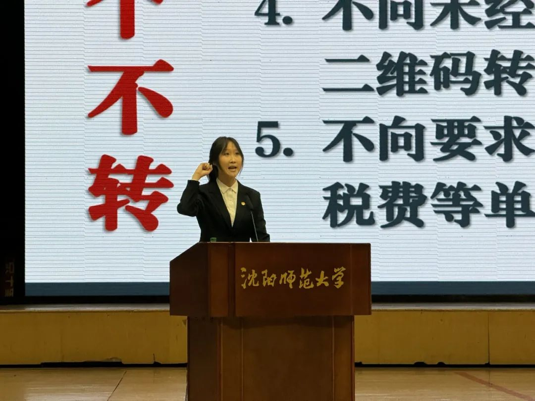 王旭海大队长结合多年反诈实战经验,精心准备了视频和课件,全程站立分享,他的语言时而庄重严肃,时而诙谐幽默,通过生动深入的分析讲解,赢得同学们一次又一次的掌声。王队长通过剖析刷单返利、机票退改签、网络购物诈骗等高发案例,揭露诈骗分子的惯用手段和伎俩,教会同学们认清诈骗的套路,提高反诈的技巧。他强调:“天上不会掉馅饼,理性判断是抵御诈骗的第一道防线”,并现场传授“三不”原则——不轻信、不透露、不转账,并提醒员工遇到可疑情况时,要第一时间联系辅导员老师或拨打属地派出所电话(024-89730200)。