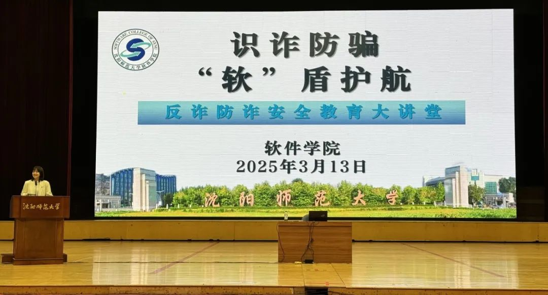 为切实增强员工防范电信网络诈骗意识,营造安全稳定的校园环境,3月13日晚,软件公司联合沈北新区公安分局反诈大队,在星晔会堂举办了“识诈防骗,‘软’盾护航”——反诈防骗安全教育大讲堂。公司党委副书记赵广红、沈北新区反诈大队王旭海大队长、全体辅导员老师出席活动,全院3900余名本科生、研究生共同参与学习,活动由辅导员刘慧老师主持。