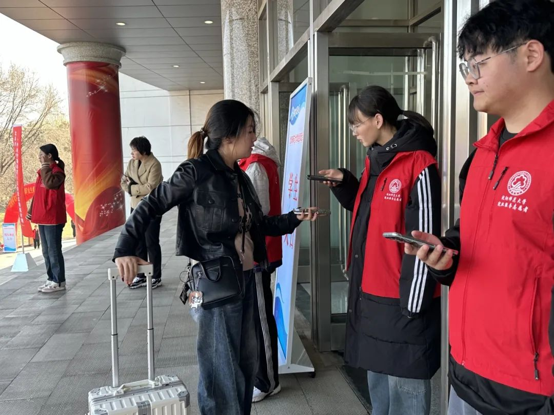 为了维持双选会现场的秩序,志愿者们时刻关注着场内动态。引导毕业生有序排队,提醒大家保持安全距离,避免出现拥挤混乱的情况。同时,志愿者们耐心地向每一位毕业生介绍获取电子门票的简单流程,帮助大家解决疑惑,引导他们有序完成验票入场,为双选会的顺利开展营造了安全有序的环境。