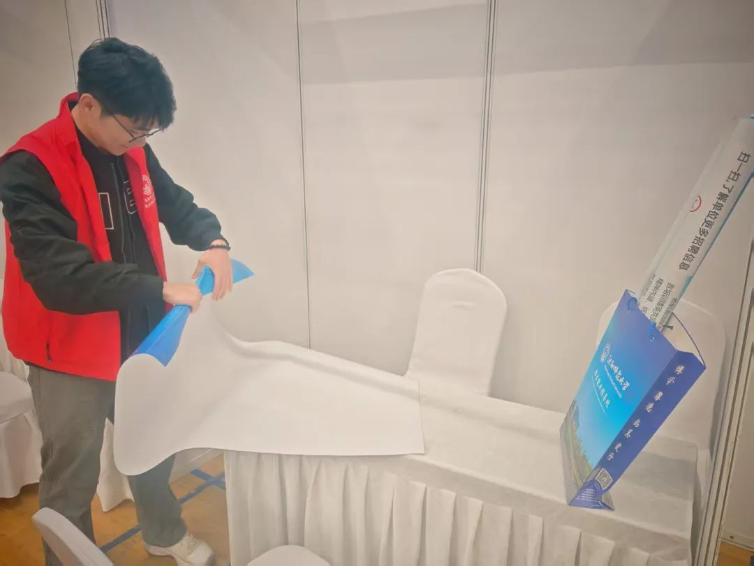 为确保本次毕业生双选会顺利开展,志愿者们提前一天完成场地分区、海报张贴、物资准备、桌椅摆放等系统化的场地筹备工作,确保活动当天各项准备工作顺畅有序。