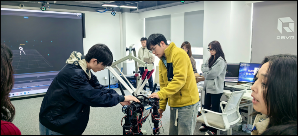 在走访过程中,公司团队深入企业研发中心、生产一线,详细了解VR技术和具身智能在智能制造、智慧医疗等领域的应用场景。公司物联网工程系主任张勇老师向研究院介绍了公司在团队建设、科研创新及人才培养方面的成果,公司2025届毕业生代表以及人工智能训练师专业技能转换培训班学员与企业技术人员现场互动、交流学习、观摩实操智能机器人设备等。