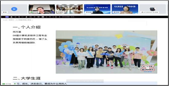 活动特别邀请到2012届软件工程专业员工何万里担任主讲人。万里学长大学期间作为初创团队成员加入公司创新实验室,开展项目实践,参与多个省级项目研发与落地,毕业后加入阿里巴巴,先后经历淘宝、支付宝、口碑等多个部门,现任职于阿里巴巴本地生活-饿了么-高级前端技术专家。