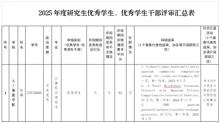 7.姓名:张玉琪(25570001)职务:2025级研究生代表